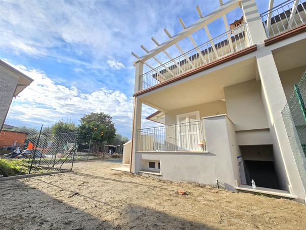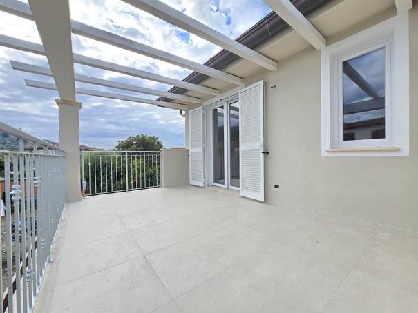 NUOVA COSTRUZIONE, IN CLASSE A3. Capezzano Pianore, unità di villetta quadrifamiliare (libera su due lati), di mq. 110 ca., ottimamente rifinita; riscaldamento a pavimento, pompe di calore, climatizzazione, pannelli fotovoltaici. Predisposizione impianto d'allarme. Pavimenti, rivestimenti e imbiancatura personalizzabili. Composta da: al piano seminterrato (accessibile anche dall'esterno), ampio vano cantina (potenziale zona giorno), centrale termica/lavanderia; disimpegno, bagno. Al piano terra, veranda di mq. 18 ca. con forno a legna, ingresso, cucina/soggiorno. Al piano primo, disimpegno notte, camera matrimoniale con terrazza di mq. 18 ca., camera media con balcone, bagno. Giardino su due lati di mq. 150 ca. con posti auto. Euro 420 mila.