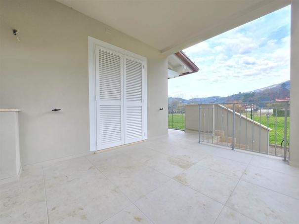 NUOVA COSTRUZIONE, CLASSE A3. Capezzano Pianore, unità di villetta quadrifamiliare (libera su due lati), di mq. 110 ca., ottimamente rifinita. Riscaldamento a pavimento, pompe di calore, climatizzazione, pannelli fotovoltaici, predisposizione impianto d'allarme. Pavimenti, rivestimenti e imbiancatura personalizzabili. Composta da: al piano seminterrato (accessibile anche dall'esterno), ampio vano cantina (eventuale zona giorno), centrale termica/lavanderia; disimpegno, bagno. Al piano terra, veranda di mq. 18 ca. con forno a legna, ingresso, cucina/soggiorno. Al piano primo, disimpegno notte, camera matrimoniale con terrazza di mq. 18 ca., camera media con balcone, bagno. Giardino su due lati di mq. 150 ca. con posti auto. Euro 420 mila.