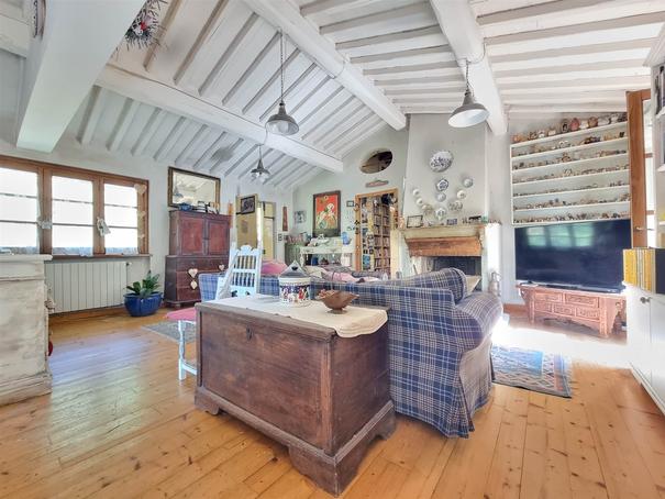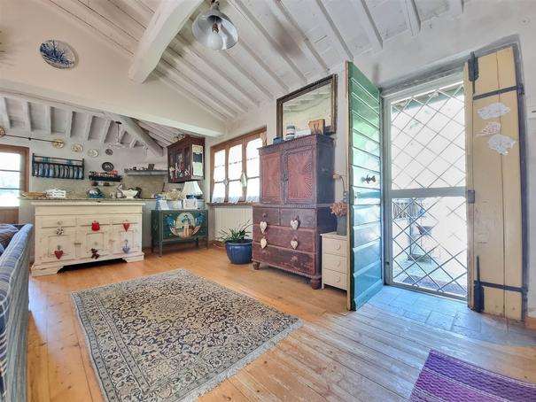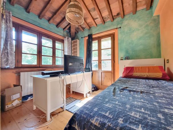 RUSTICO TUTTO SU UN PIANO CON GIARDINO. Colline di Camaiore, porzione di più ampio fabbricato al piano secondo ed ultimo, di mq. 110 ca., in stato di manutenzione abitabile, composta da: accesso tramite scala esterna, terrazza di mq. 10 ca., ampia zona giorno (openspace); cucina-sala con camino. Disimpegno notte, camera matrimoniale, cameretta, stanza armadi (eventuale terza camera); bagno con vasca idromassaggio, altro bagno con doccia. Quattro balconi. Giardino pertinenziale di mq. 350 ca., posti auto. Euro 219 mila.