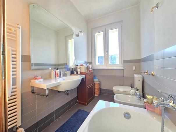 AMPIA VILLETTA IN PROSSIMITÀ DEL CENTRO, IN CLASSE A2. Camaiore, unità di villetta bifamiliare (libera su tre lati), di mq. 160 ca., adatta anche per due nuclei familiari, ottimamente rifinita (cappotto termico, impianto fotovoltaico 3,80 kWp con 10 pannelli, infissi in pvc a taglio termico, impianto di allarme), composta da: al piano terra, disimpegno d'ingresso, due ampi vani oltre al vano centrale termica (adibiti a cucina/tinello, wc, studi e/o palestra). Al piano primo, ampio soggiorno con balcone, cucina abitabile con camino e balcone, bagno con doccia. Al piano secondo, disimpegno notte, 3 camere matrimoniali (di cui due con balcone), bagno con vasca.